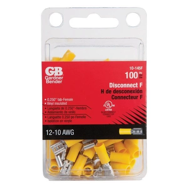 12-10 Ga. Insulated Wire Female Disconnect Yellow 100 Pk