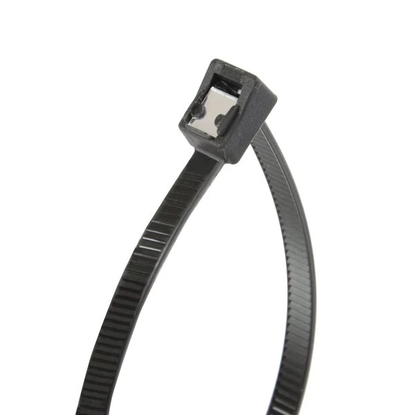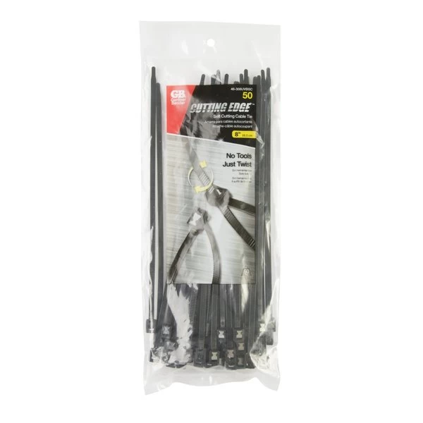 Indooroutdoor self cutting cable tie, twist tail zip tie, 50lb tensile strength Small cutting blade designed into the head of each tie 17 width x 055 depth