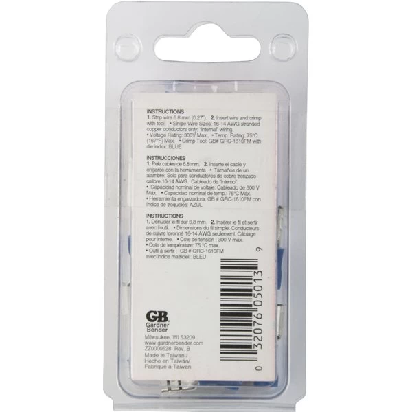 Quick and reliable crimptype wire connections Vinyl insulated shank with 0250 in x 0032 in tab 75 deg C temperature rating
