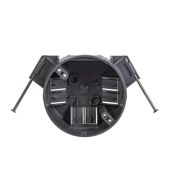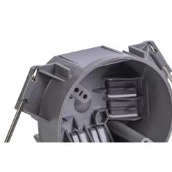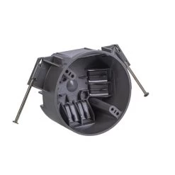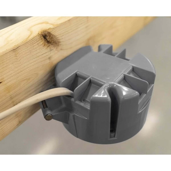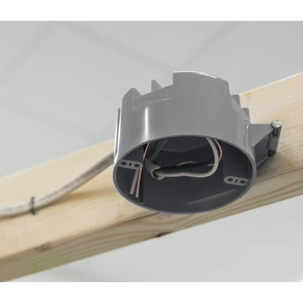 GB Electrical Box, Cable Entry Hinge, Number of Gangs 1, Cubic Capacity 20 cuin, Round, Polycarbonate, Gray, 512 in W, 4 in D, 23 in H, InCeiling, Nail Mounting, Suitable for NonMetallic Sheathed Cable and Up to 50 lb Light Fixture Installation, Includes Captive Nails