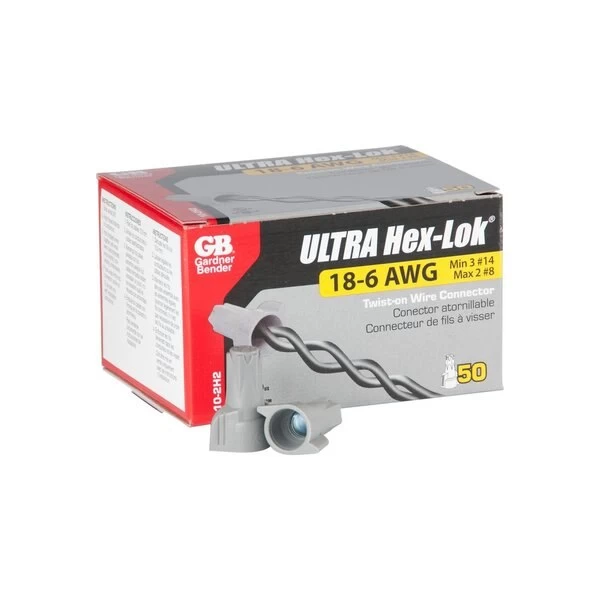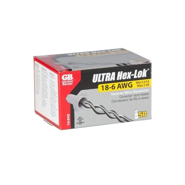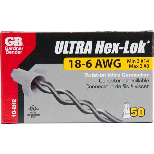 These multirange hex head connectors cover 95 of everyday applications making them the simple choice for all of your wire connection needs Don’t worry about using a hex tool to install you can’t overtorque this connector because it’s patented hex head design strips out at UL torque saving the wires and your fingers Inside the connector a zincplated square wire spring ensures a secure connection that resists corrosion The thermoplastic shell is designed for longlasting strength and resists chemicals while the deep skirt supports smooth wire entry and coverage of stripped wires