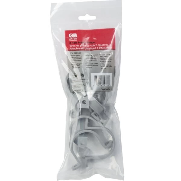 Plastic strap, 1-1/2″ features enables secure fastening of plastic electrical conduit, schedule 40 pvc, copper tubing, etc. heavy-duty polyethylene resists deterioration from uv rays and breakage from extreme cold.