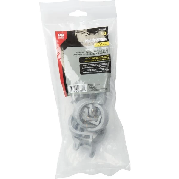 Plastic strap, 1-1/4″ features enables secure fastening of plastic electrical conduit, schedule 40 pvc, copper tubing, etc. heavy-duty polyethylene resists deterioration from uv rays and breakage from extreme cold.