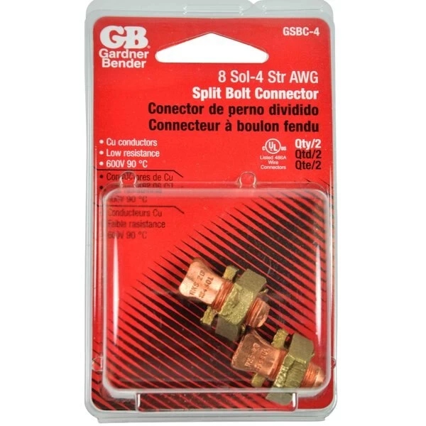 These copper split bolt connectors have all copper alloy construction for high mechanical strength, maximum conductivity and low resistance