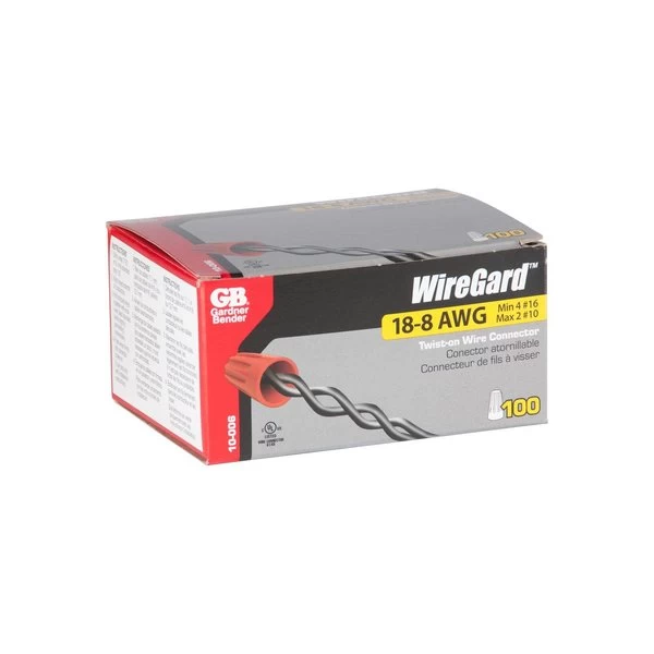 WireGard twiston wire connectors are designed for generalpurpose applications requiring the connection of 2 or more copper wires WireGard connectors feature a straight type polypropylene shell with side knurling for an easy grip The inner spring is zincplated to resist corrosion and has a tight square profile to make quick secure contact with wires and ensure connections with positive continuity These allpurpose connectors require fewer turns to meet required torque and meet or exceed UL pull out and dielectric test requirements The tough thermoplastic shell shields against environmental extremes and resists chemical action from hydrocarbons, diluted acid or alkaline solutions The highdielectric shell also features a deep skirt design to prevent exposure of bare wire Flameretardant properties resist heat distortion up to 221 deg F Color coded for quick and easy size selection